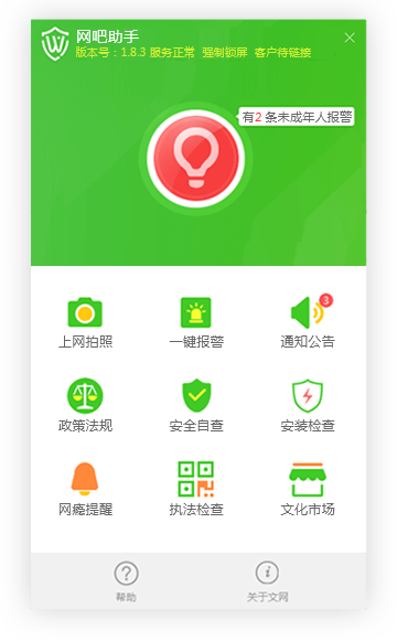 《文網(wǎng)衛(wèi)士》網(wǎng)吧監(jiān)管系統(tǒng)通過人臉識別技術(shù),將上網(wǎng)用戶人像與上網(wǎng)證件圖像進行比對,智能地判斷并對疑似未成年人上網(wǎng)行為產(chǎn)生報警,提高執(zhí)法人員對于未成年人進入網(wǎng)吧行為監(jiān)管的力度。